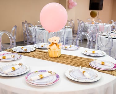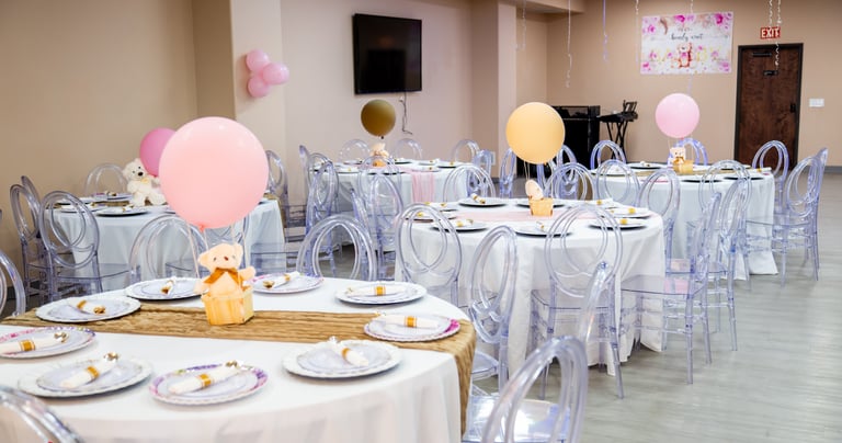 Choose from elegant table settings, acrylic charger plates, Chiavari chairs, linens, and uplighting packages to match your event's aesthetic.